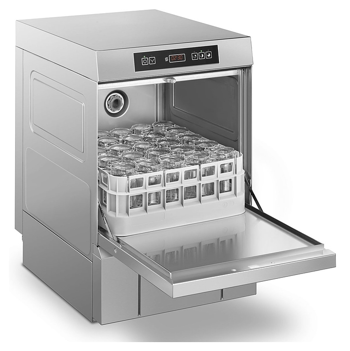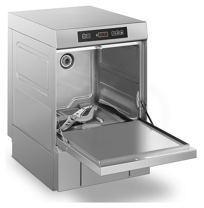 Стаканомоечная машина Smeg SPG405MS серии Ecoline используется на предприятиях общественного питания и торговли для мойки стаканов, чашек и бокалов. Модель оснащена электронным управлением,5-ти ступенчатой системой фильтрации и регулируемыми по высоте ножками. Коопус и бак выполнены из нержавеющей стали AISI 304, задняя панель - из оцинкованной стали, распылители - из пластика и нержавеющей стали. Особенности: