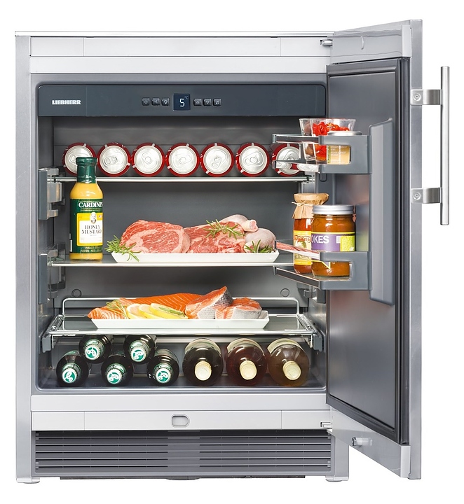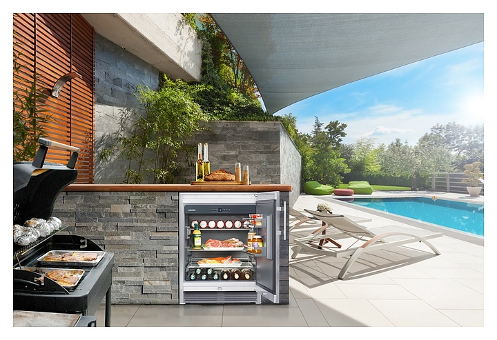 Уличный холодильник Liebherr OKes 1750 предназначен для охлаждения и кратковременного хранения продуктов и напитков в частных домах, отелях и на открытом воздухе. Модель оснащена электронной панелью управления. Боковые стенки, дверь и ручка выполнены из нержавеющей стали, полки - из стекла, надверные полки - из пластика. Особенности: