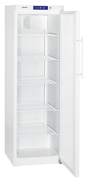 Холодильный шкаф Liebherr GKv 4310 предназначен для охлаждения и кратковременного хранения скоропортящихся продуктов и напитков на предприятиях общественного питания и торговли. Модель оснащена электронным управлением и цифровой индикацией температуры. Внутренняя прокладка выполнена из белого полистирола, дверь и корпус - из стали, покрытие решеток - из пластика. Особенности: