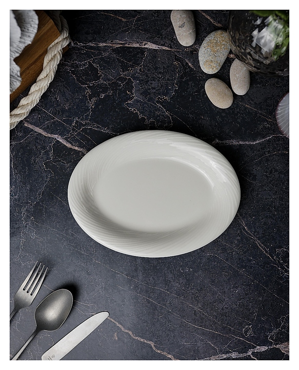 Овальное блюдо Porland 115929 серии Storm предназначено для профессионального использования на предприятиях общественного питания. Декор изделия отличается уникальным дизайном с плавными волнообраными линиями. Посуда изготавливается по запатентованной технологии Alumilite с добавлением оксида алюминия, что делает ее устойчивой к сколам, механическим и термическим воздействиям. Изделие выполнено из твердого фарфора и покрыто высококачественной тугоплавкой глазурью Feldspatic. Особенности: