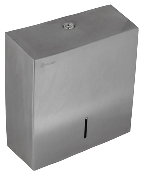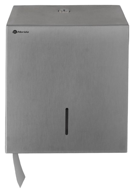 Диспенсер Merida STELLA R MINI BSM203.R предназначен для размещения и подачи туалетной бумаги в листах в общественных санитарных узлах гостиниц, предприятий общепита, медицинских учреждений и других мест массового пребывания. Модель оснащена запираемым на ключ барабанным замком и окошком индикации наличия бумаги. Корпус изготовлен из матовой нержавеющей стали (сатина). Особенности: