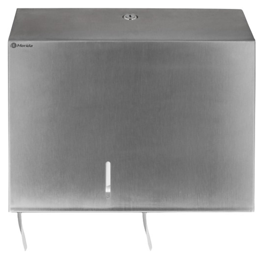 Диспенсер Merida STELLA DUO BSM202.R предназначен для размещения и подачи туалетной бумаги в листах в общественных санитарных узлах гостиниц, предприятий общепита, медицинских учреждений и других мест массового пребывания. Модель оснащена запираемым на ключ барабанным замком и удобным окошком индикации наличия бумаги. Корпус изготовлен из матовой нержавеющей стали AISI 304. Особенности: