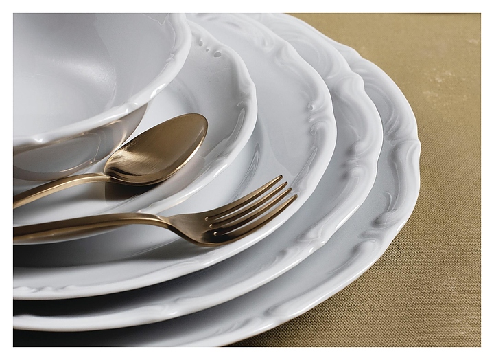 Тарелка Porland 181924 серии Maria предназначена для профессионального использования на предприятиях общественного питания. Декор изделия отличается классическим дизайном с элегантным рельефным рисунком и отлично подойдет для создания изысканной атмосферы. Посуда изготавливается по запатентованной технологии Alumilite с добавлением оксида алюминия, что делает ее устойчивой к сколам, механическим и термическим воздействиям. Изделие выполнено из твердого фарфора и покрыто высококачественной тугоплавкой глазурью Feldspatic. Цена указана за 1 шт. Особенности: