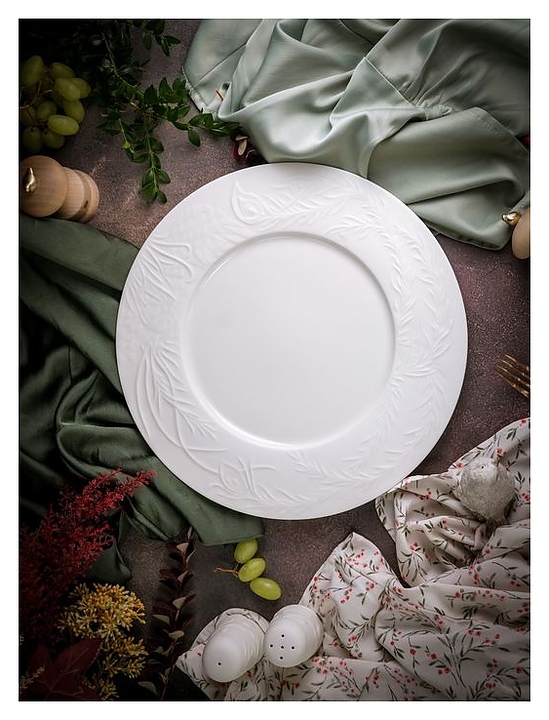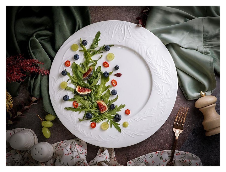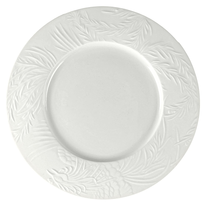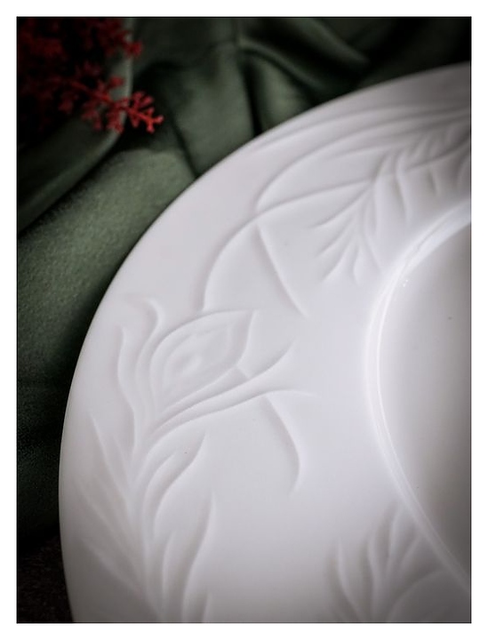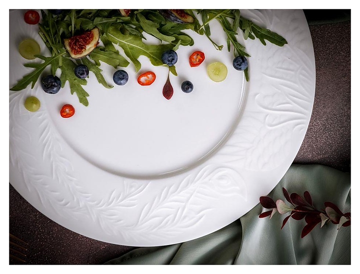Тарелка Porland 18AS32 серии Feniks Alumilite предназначена для профессионального использования на предприятиях общественного питания. Декор коллекции отличается рельефным растительным орнаментом и изображением птиц. Посуда изготавливается по запатентованной технологии Alumilite с добавлением оксида алюминия, что делает ее устойчивой к сколам, механическим и термическим воздействиям. Изделие выполнено из твердого фарфора и покрыто высококачественной тугоплавкой глазурью Feldspatic.