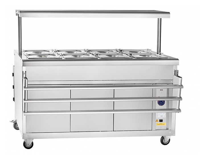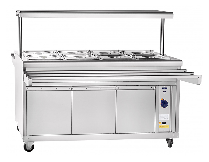 Мармит Abat ЭМК-70ПМ-01 используется в составе передвижной линии раздач для демонстрации, кратковременного хранения и поддержания вторых блюд в горячем состоянии в составе линий раздач на предприятиях общественного питания и торговли. Модель оснащена регулируемыми по высоте ножками. Конструкция выполнена из нержавеющей стали. Особенности: