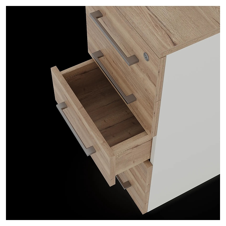 Мобильная тумба Кобор TМ5-40/60 white/natural используется совместно с офисными столами. Модель оснащена 5 выдвижными ящиками и 4 колесами. Корпус выполнен из ламинированной древесно-стружечной плиты (ЛДСП) цвета белый муар (RAL9016), столешница и ящики – из ЛДСП цвета натуральный дуб (H1180 ST37). Внимание! На фото аналогичная модель другого размера. Внимание! Информация о товарах, размещенная на сайте, не является публичной офертой, определяемой положениями Части 2 Статьи 437 Гражданского кодекса Российской Федерации. Производители вправе вносить изменения в технические характеристики, внешний вид и комплектацию товаров без предварительного уведомления. Уточняйте характеристики у наших менеджеров перед оформлением заказа. |