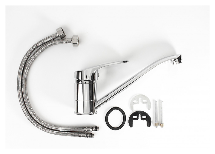 Смеситель VODA Lucky LY 05 предназначен для подачи горячей и холодной воды в кухонных помещениях. Модель оснащена керамическим картриджем, обеспечивающим плавный ход рычага смесителя, контроль и точность при выборе напора и температуры воды. Корпус изделия выполнен из латуни, отличающейся прочностью, долговечностью и устойчивостью к перепадам температур, излив - из нержавеющей стали. В комплект поставки входят смеситель, ребро жесткости, крепление на гайке и гибкая подводка. Особенности: