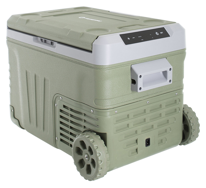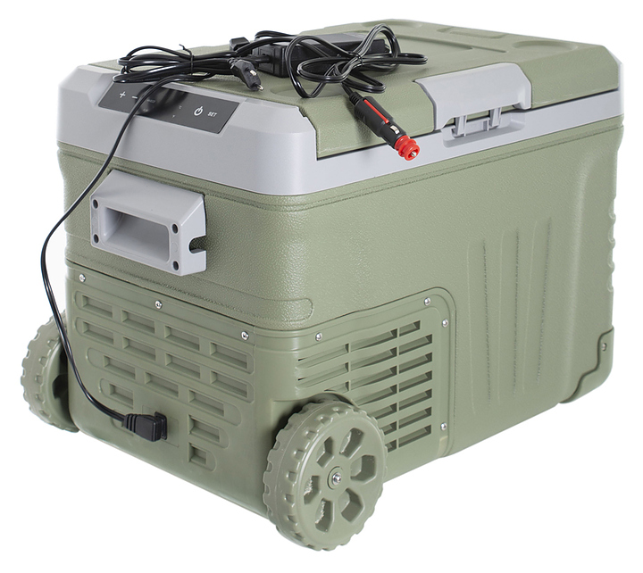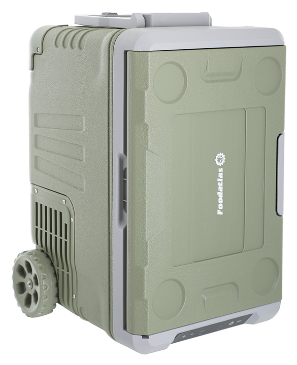 Автохолодильник Foodatlas FA-35 Eco предназначен для охлаждения, хранения и транспортировки охлажденных продуктов питания и напитков в легковых и грузовых автомобилях, автодомах, специальной технике, лодках, катерах, яхтах, других видах транспорта и в быту. Модель оснащена электронной панелью управления с цифровым дисплеем, высокоэффективным компрессором постоянного тока, ручкой и большими колесами. Корпус выполнен из легких материалов с теплоизоляцией из пенополиуретана. В комплект поставки входит адаптер переменного/постоянного тока. Особенности: