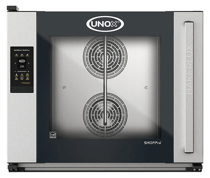 Печь конвекционная UNOX XEFR-06EU-ETRV-MT Vittoria серии BAKERLUX SHOP.Pro предназначена для допекания замороженных изделий и выпечки любых хлебобулочных и кондитерских изделий полного цикла на предприятиях общественного питания и торговли, в пекарнях и кондитерских. Модель оснащена электронным управлением с сенсорным ЖК-дисплеем диагональю 2,4" и светодиодным освещением камеры. Камера выполнена из нержавеющей стали AISI 304, направляющие - из гнутого стального L-образного листа. Пекарские листы не входят в комплект поставки и приобретаются отдельно. Рекомендуется дополнительно приобрести водоумягчитель и фильтр-систему для очистки и смягчения воды. 3 режима работы: