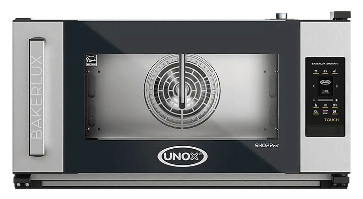 Печь конвекционная UNOX XEFR-03EU-ETLV Elena серии BAKERLUX SHOP.Pro предназначена для допекания замороженных изделий и выпечки любых хлебобулочных и кондитерских изделий полного цикла на предприятиях общественного питания и торговли, в пекарнях и кондитерских. Модель оснащена электронным управлением с сенсорным ЖК-дисплеем диагональю 2,4" и светодиодным освещением камеры. Камера выполнена из нержавеющей стали AISI 304, направляющие - из хромированной стали.