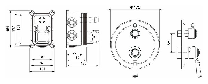 Смеситель для ванны и душа Aquatek Классик AQ1547PG предназначен для подачи горячей и холодной воды в ванных помещениях. Модель оснащена встроенным поворотным дивертором, керамическим картриджем, обеспечивающим плавный ход рычага смесителя, контроль и точность при выборе напора и температуры воды. Декоративная наклдака на стену выполнена из нержавеющей стали. В комплект поставки входят смеситель и внутренняя часть. Душевой гарнитур в комплект поставки не входит и приобретается отдельно. Особенности: