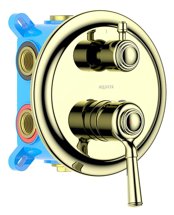 Смеситель для ванны и душа встраиваемый Aquatek Классик AQ1547PG 3 режима, полированное золото