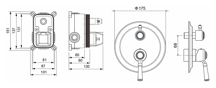 Смеситель для ванны и душа встраиваемый Aquatek Классик AQ1546CR 2 режима, хром