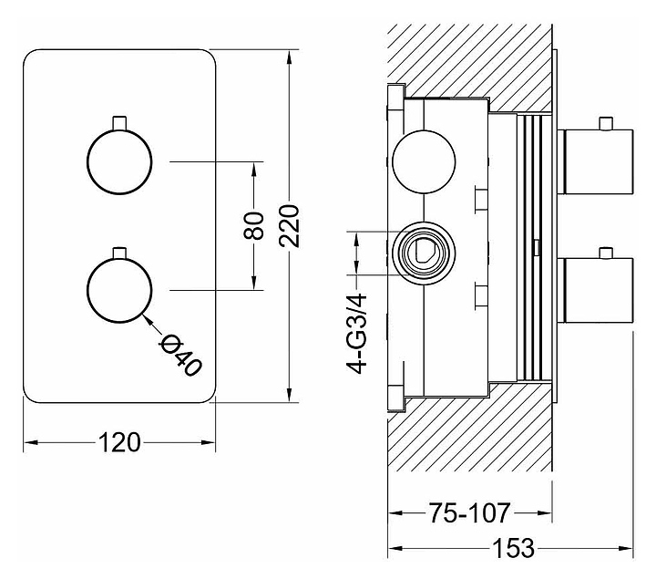 Смеситель для ванны и душа встраиваемый Aquatek Европа AQ1392MB термостат, 2 режима, матовый черный