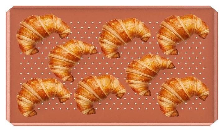 Лист для выпечки UNOX TG 315 FORO.SILICO предназначен для приготовления круассанов, изделий из слоеного теста, выпечки других хлебобулочных и кондитерских изделий в пароконвектоматах, печах и пекарских шкафах на предприятиях общественного питания и торговли, в пекарнях и кондитерских. Изделие выполнено из алюминия с силиконовым антипригарным покрытием. Особенности: