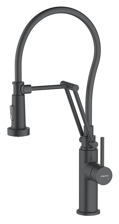 Смеситель для кухни профессиональный Aquatek Европа 2 jet AQ1388MB с гибким поворотным изливом, черный матовый