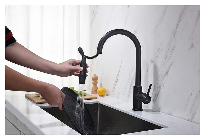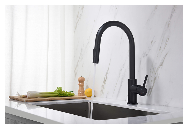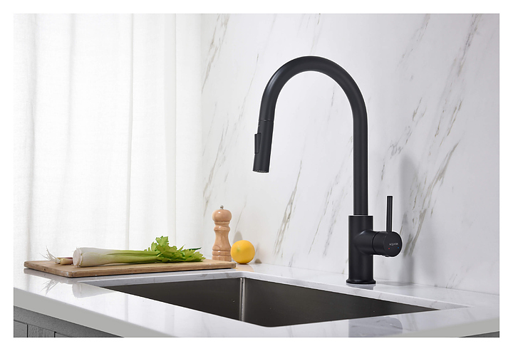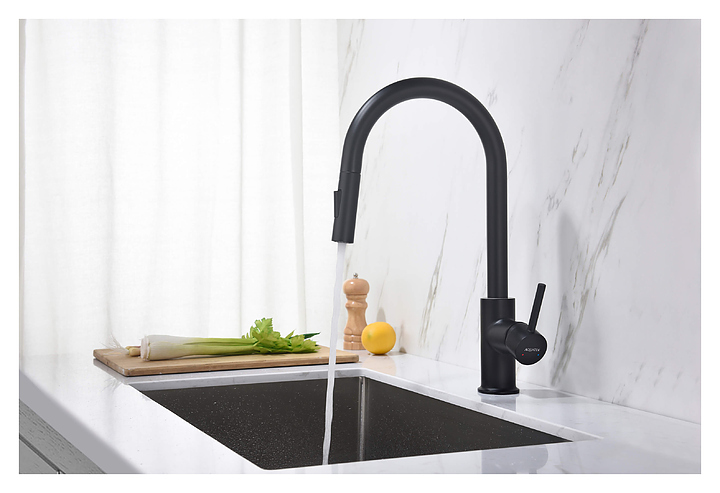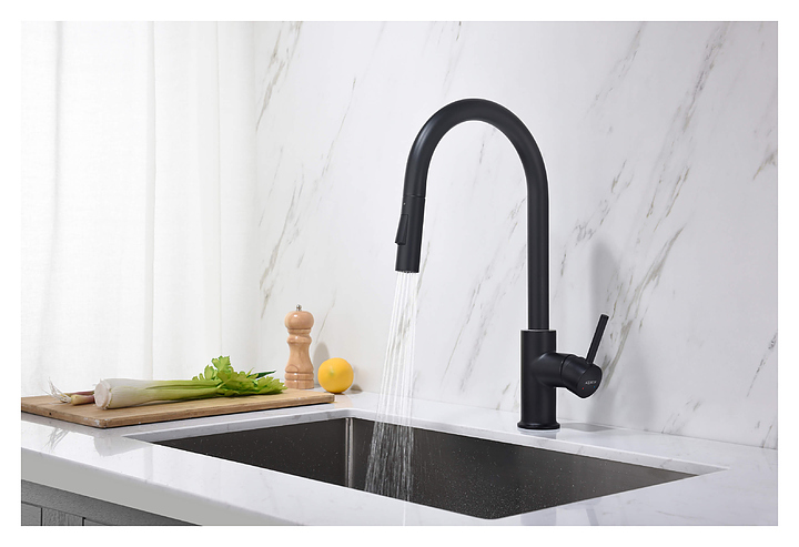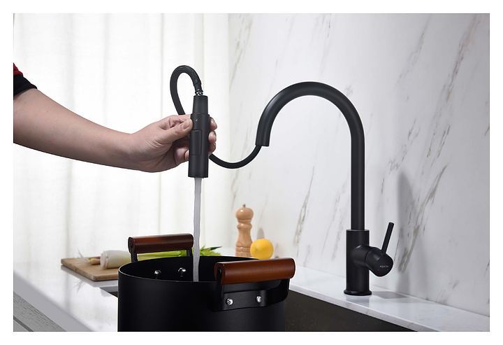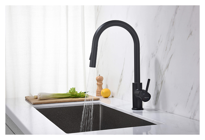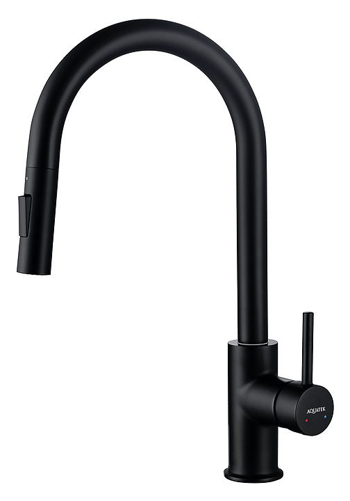 Смеситель для кухни Aquatek Европа 2 jet AQ1384MB с вытяжным изливом, черный матовый