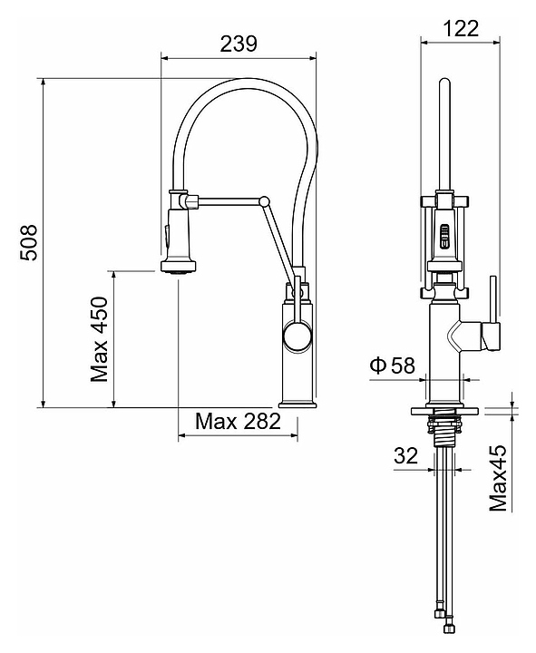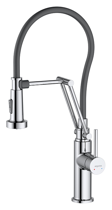 Смеситель для кухни профессиональный Aquatek Европа 2 jet AQ1388CR с гибким поворотным изливом, хром