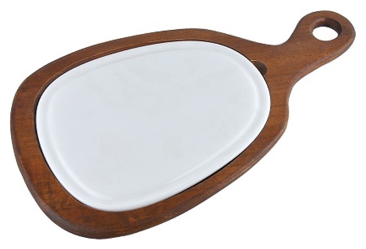 Блюдо для подачи Bonna White 73138 с ручкой на дерев. подставке