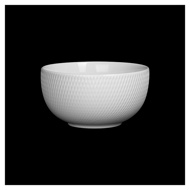 Салатник Corone Rosenthal Banquet LQ-QK15213 используется для подачи салатов в ресторанах, кафе, на других предприятиях общественного питания и в домашних условиях. Модель круглой формы оснащена плавно расширенным в основании бортом с текстурным ромбовидным паттерном на лицевой поверхности. Изделие выполнено из высококачественного белого фарфора. Особенности: