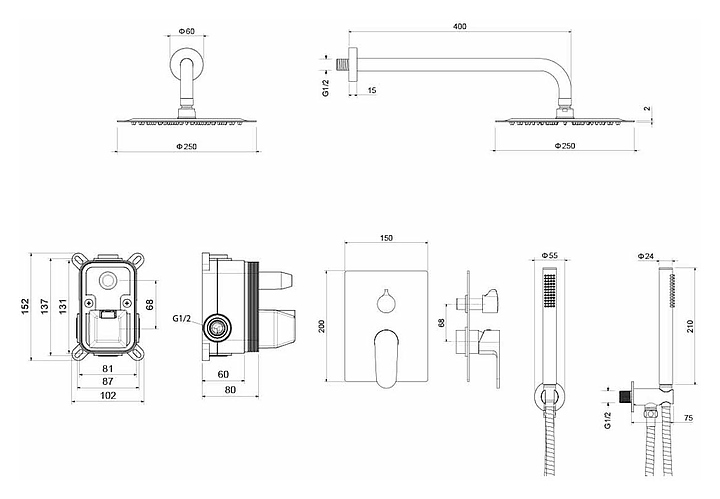 Комплект душевой встраиваемый Aquatek Оберон AQ1272CR хром