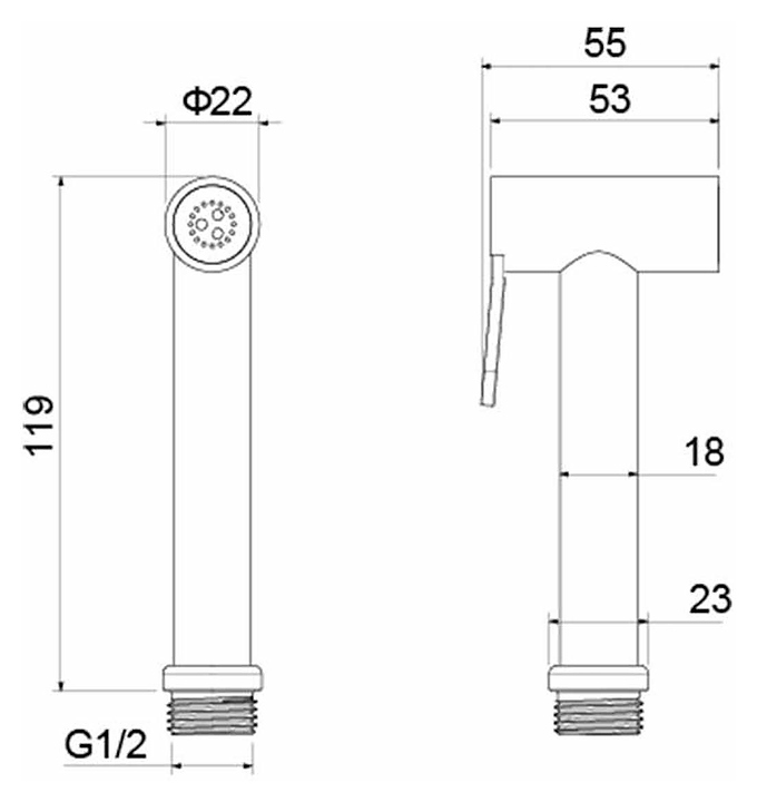 Гигиенический душ Aquatek AQ2057CR предназначен для использования в туалетных комнатах. Гигиеническая лейка оснащена нажимным механизмом для остановки потока воды. Изделие выполнено из высококачественной латуни, отличающейся прочностью, долговечностью и устойчивостью к перепадам температур, а также из ABS-пластика. Шланг и держатель в комплект поставки не входят и приобретаются отдельно. Особенности: