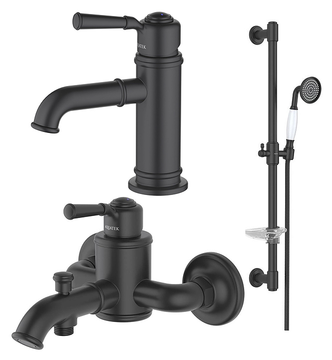 Комплект смесителей с душевым гарнитуром Aquatek Классик AQ1530MB 3 в 1 черный матовый