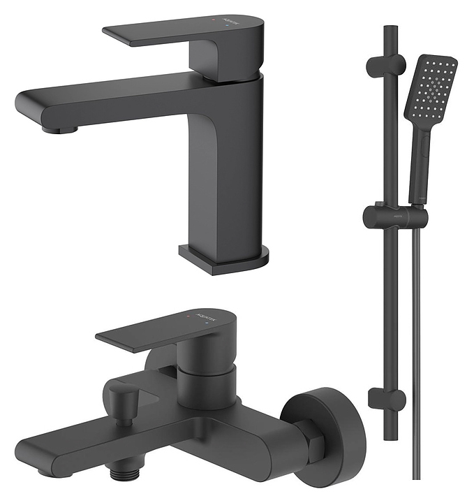 Комплект смесителей с душевым гарнитуром Aquatek Лира AQ1430MB 3 в 1 черный матовый