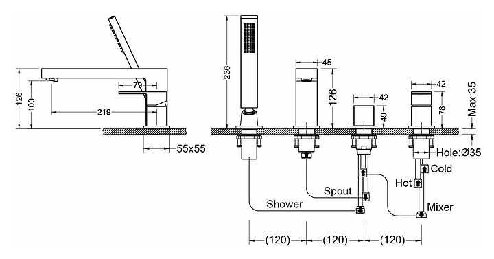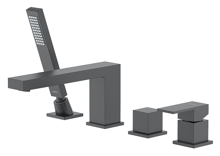 Смеситель для ванны и душа Aquatek Либра AQ1648MB встраиваемый на борт ванны, 4 отверстия, черный матовый