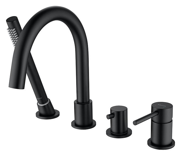 Смеситель для ванны и душа Aquatek Европа AQ1348MB встраиваемый на борт ванны, 4 отверстия, черный матовый
