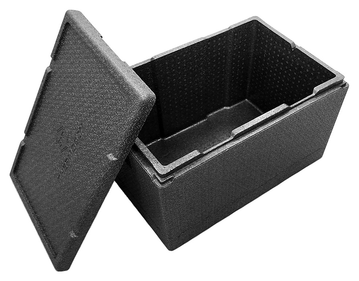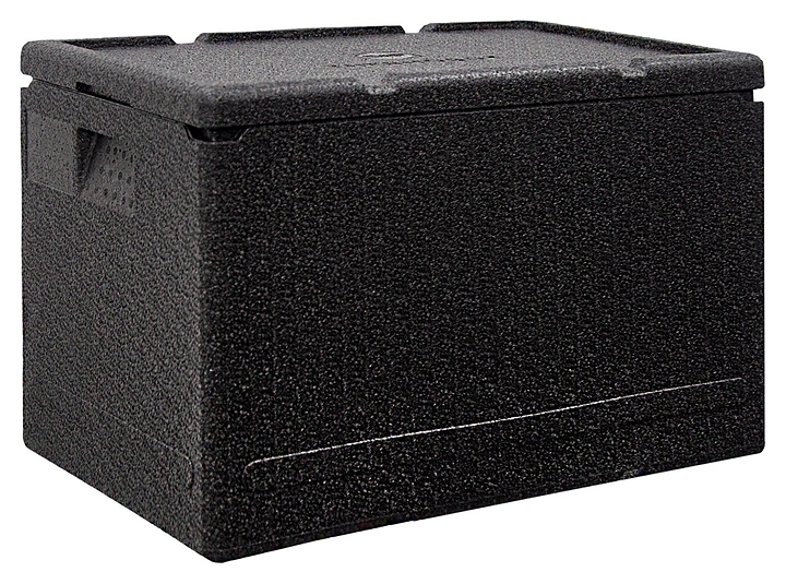 Термоконтейнер TERMOBOX StP Pro N 6440P используется службами доставки предприятий общественного питания и пищевой промышленности, а также в быту, во время туристических походов, пикника, рыбалки или дорожных путешествий для хранения и транспортировки приготовленных блюд, напитков, льда, свежих фруктов и других пищевых продуктов в автономных изотермических условиях. Модель прямоугольно ориентированной формы оснащена съемной плотно прилегающей крышкой. Изделие выполнено из высококачественного вспененного полипропилена (EPP) черного цвета. Особенности: