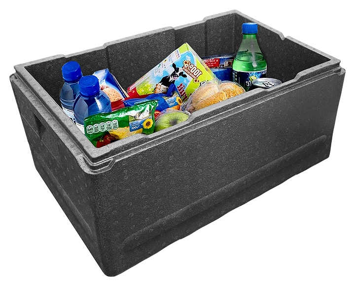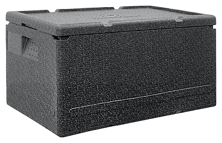 Термоконтейнер TERMOBOX StP Norm N 6424N используется службами доставки предприятий общественного питания и пищевой промышленности, а также в быту, во время туристических походов, пикника, рыбалки или дорожных путешествий для хранения и транспортировки приготовленных блюд, напитков, льда, свежих фруктов и других пищевых продуктов в автономных изотермических условиях. Модель прямоугольно ориентированной формы оснащена съемной плотно прилегающей крышкой. Изделие выполнено из высококачественного вспененного полипропилена (EPP) черного цвета. Особенности: