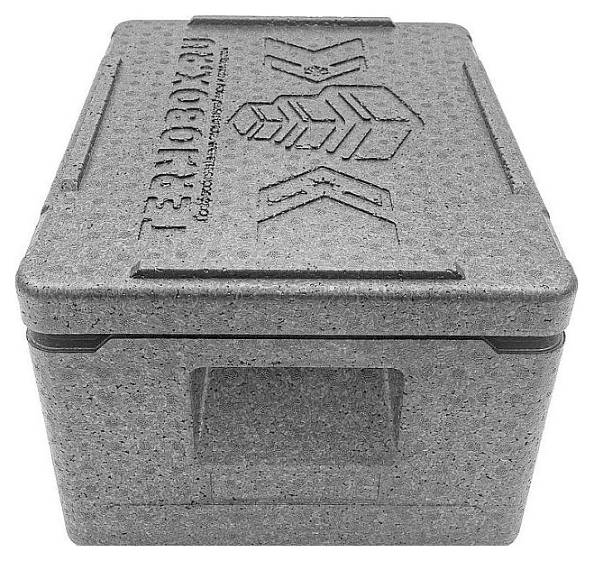 Термоконтейнер TERMOBOX StP Light 4322L используется службами доставки предприятий общественного питания и пищевой промышленности, а также в быту, во время туристических походов, пикника, рыбалки или дорожных путешествий для хранения и транспортировки приготовленных блюд, напитков, льда, свежих фруктов и других пищевых продуктов в автономных изотермических условиях. Модель прямоугольно ориентированной формы оснащена съемной плотно прилегающей крышкой. Изделие выполнено из высококачественного вспененного полипропилена (EPP) черного цвета. Особенности: