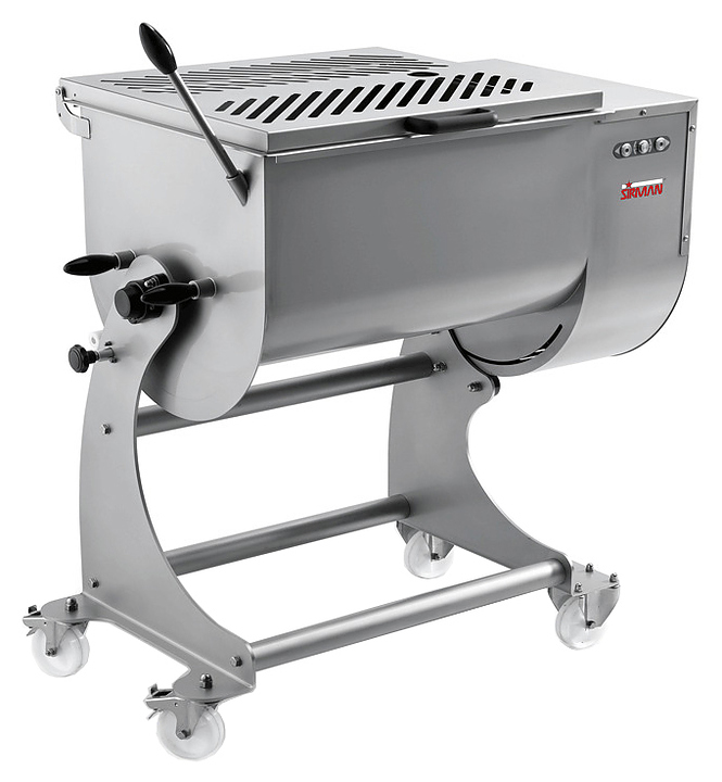 Фаршемешалка Sirman IP120 XP BA используется на предприятиях общественного питания и торговли для перемешивания различных видов фарша до однородной консистенции. Модель оснащена электромеханической влагонепроницаемой панелью управления и двухлопостевой системой перемешивания, вращающейся как в прямом, так и в обратном направлении. Корпус выполнен из нержавеющей стали, редуктор с зубчатыми колесами - из шлифованной и закаленной стали, дежа - из нержавеющей стали AISI 304. Особенности: