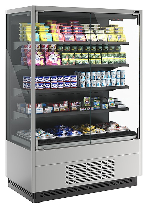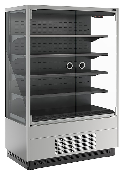Холодильная горка Carboma FC 20-07 VM 1,3-1 версия 2.0 Light серии Cube 2 используется на предприятиях общественного питания и торговли для охлаждения, кратковременного хранения и предпродажной демонстрации напитков, мяса, птицы, полуфабрикатов, молочных и гастрономических изделий. Модель оснащена 4 рядами навесных полок с кронштейнами, 2 распашными дверьми, подставкой с фронтальной термовыводящей и цокольной решетками. Корпус прямоугольно ориентированной формы выполнен из стали с антикоррозийным покрытием внешних панелей, полок и кронштейнов серого цвета (RAL 9006), цоколя и интерьера черного цвета (RAL 9005), теплоизоляция – из пенополиуретана. Особенности: