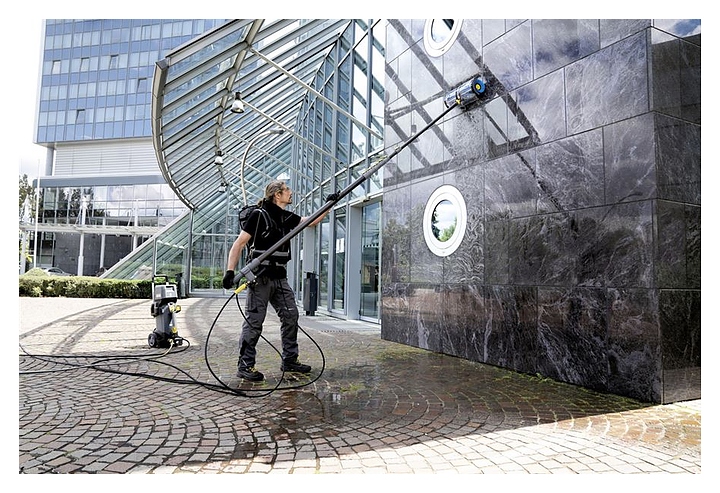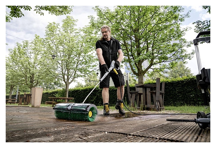 Устройство Karcher Roller Brush 500 используется совместно с мойками высокого давления Karcher для вращения цилиндрических щеток, применяемых для очистки фасадов, солнечных панелей и других поверхностей. Устанавливается на струйной трубке (обычной или телескопической). Конструкция выполнена из нержавеющей стали и полимера PEEK. Щетки в комплект поставки не входят и приобретаются отдельно. Особенности: