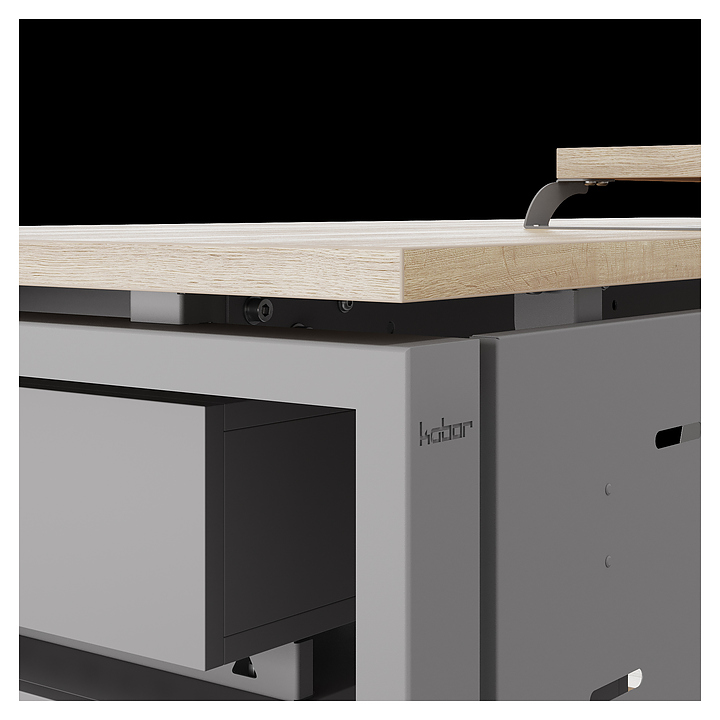 Компьютерный стол Кобор KTS1-100/60 aluminum/natural используется в офисных помещениях и кабинетах руководителей. Модель оснащена опорами в форме наклонной трапеции. Каркас выполнен из металла, выкрашенного в цвет алюминиевый металлик (RAL9006), столешница – из ламинированной древесно-стружечной плиты (ЛДСП) цвета натуральный дуб (H1180 ST37). Опции (заказываются отдельно):