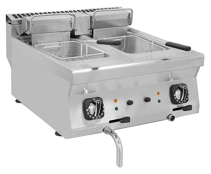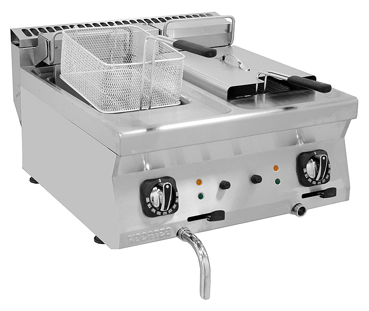 Электрическая фритюрница Kocateq MCEF 87 используется в составе тепловой линии 700 или отдельно на предприятиях общественного питания и торговли для приготовления различных продуктов в большом количестве масла или жира. Модель оснащена термостатом и регулируемыми по высоте ножками. Корпус выполнен из нержавеющей стали. В комплекте поставки входят 2 хромированные корзины, специальная структура для подвешивания корзины над емкостью и крышки. Особенности: