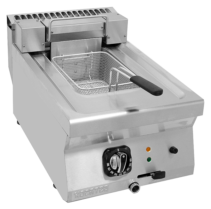 Электрическая фритюрница Kocateq MCEF 47 используется в составе тепловой линии 700 или отдельно на предприятиях общественного питания и торговли для приготовления различных продуктов в большом количестве масла или жира. Модель оснащена термостатом и регулируемыми по высоте ножками. Корпус выполнен из нержавеющей стали. В комплекте поставки входят хромированная корзина, специальная структура для подвешивания корзины над емкостью и крышка. Особенности: