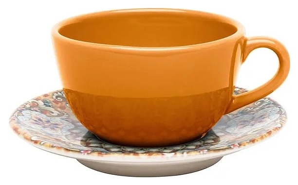 Чайная пара Oxford UNNI Shape CASTELLO 92753 AY04-5607 используется на предприятиях общественного питания и торговли, а также в домашних условиях для подачи чая. Название модельного ряда Unni в переводе с исландского «любимый» отсылает к скандинавской концепции минимализма – комфорта в простоте и функциональности без потери внешней элегантности форм. Коллекция, вдохновленная традиционным для сицилийских мастеров стилем ручной росписи посуды, декорирована узорными радиальными паттернами с растительными элементами в комбинации желтого, фиолетового и зеленого тонов. Модель состоит из круглого блюдца и чашки с плавно расширенным бортом и дугообразной рукояткой. Изделия выполнены из высококачественной керамики с глянцевой глазурованной поверхностью, чашка желтого цвета. Цена указана за 1 шт. Особенности: