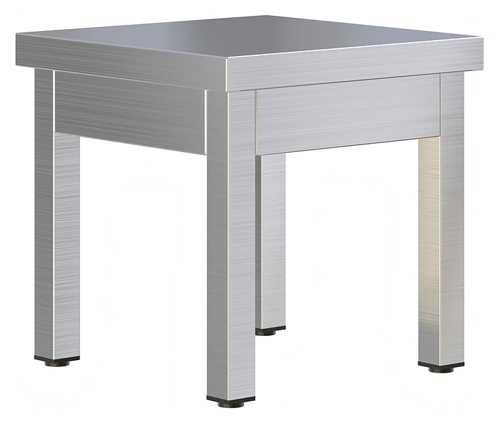 Подставка Restoinox ПО-10/6/5 предназначена для размещения различного оборудования и инвентаря на предприятиях общественного питания и торговли. Модель оснащена регулируемыми по высоте опорами. Ножки выполнены из квадратной трубы 40х40 мм из нержавеющей стали Aisi 430, столешница и ребро жесткости - из нержавеющей стали Aisi 430, подпятники опор - из прочного пластика. Особенности:
