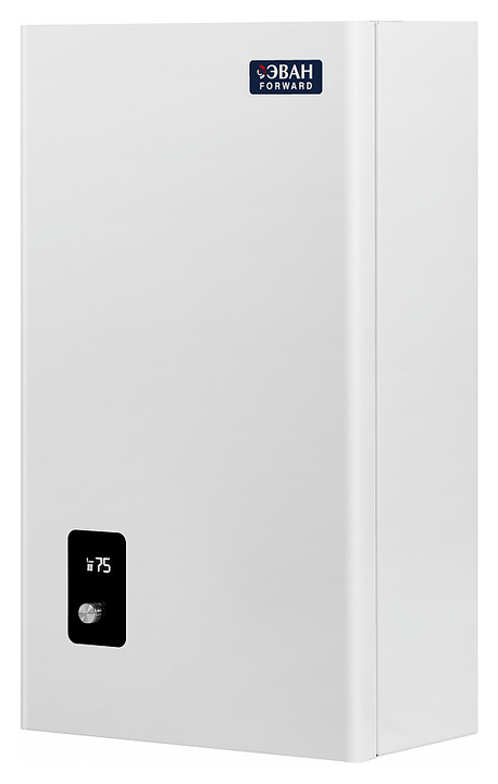 Электрический котел ЭВАН FORWARD-3 предназначен для использования в системах отопления в жилых и загородных частных домах, а также других бытовых и хозяйственных объектах. Модель оснащена цилиндрическим теплообменником с блоком погружных трубчатых электронагревателей (ТЭНов), расширительным баком, циркуляционным насосом Эван, резьбовыми штуцерами для подключения отопительного контура снизу, электромеханической панелью управления с жидкокристаллическим дисплеем индикации. Вертикально ориентированный корпус прямоугольного сечения выполнен из стали с антикоррозийным покрытием белого цвета, ТЭНы – из высококачественной нержавеющей стали.