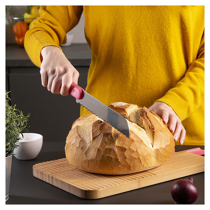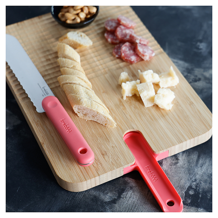 Разделочная доска Trebonn Chopping boards and Knives 1120101 используется для нарезки продуктов на предприятиях общественного питания и торговли. Доску можно мыть только вручную. Изделие выполнено из бамбука. В комплект поставки входит нож для хлеба. Дополнительные характеристики:
