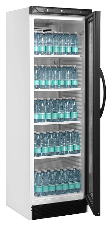 Холодильный шкаф TEFCOLD CEV425 1 LED предназначен для кратковременного хранения и предпродажной демонстрации напитков на предприятиях общественного питания и торговли. Модель оснащена 5 полками-решетками, 2 регулируемыми по высоте ножками, 2 роликами и распашной дверью с замком. Внутренняя облицовка камеры выполнена из АБС-пластика белого цвета, экстерьер боковин белого цвета, фронт черного цвета. Особенности: