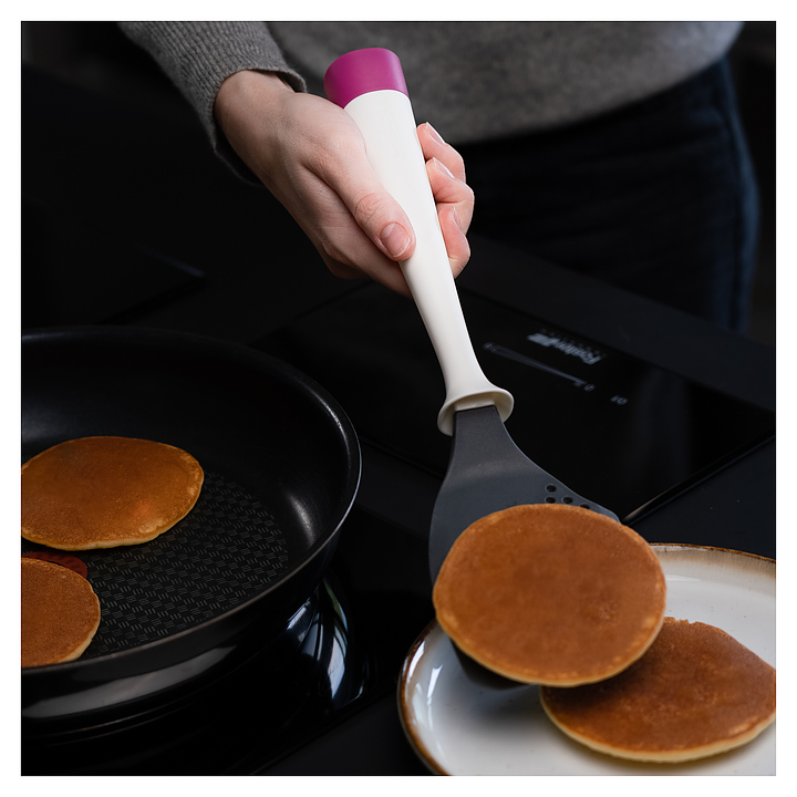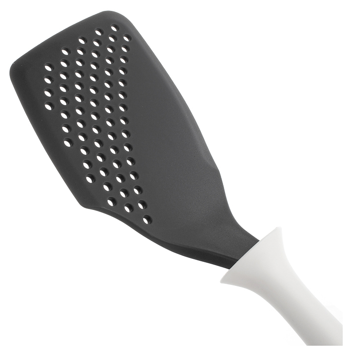 Лопатка Trebonn& Kitchen Tools 1523106 используется на предприятиях общественного питания для раздачи, переворачивания мяса, рыбы, котлет и других блюд при жарке на предприятиях общественного питания. Модель имеет изогнутую рабочую часть с перфорацией, удобную длинную ручку и каплесборник. Лопатку можно мыть в посудомоечной машине. Изделие выполнено из нейлона. Дополнительные характеристики: