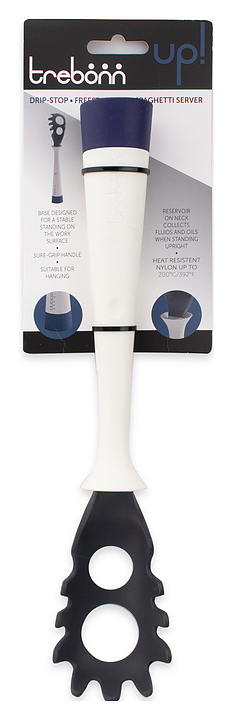Ложка Trebonn Kitchen Tools 1523107 используется на предприятиях общественного питания и торговли, в частных домах и квартирах для разделения спагетти и других макаронных изделий во время варки, а также для извлечения их из горячей воды после окончания процесса готовки. Модель оснащена каплесборником. Ложку можно мыть в посудомоечной машине. Изделие выполнено из нейлона. Дополнительные характеристики: