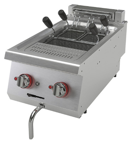 Макароноварка Vortmax SEP 74 используется на предприятиях общественного питания и торговли для приготовления пасты, спагетти и прочих видов макаронных изделий, а также вареников, пельменей, морепродуктов, крупяных гарниров, овощей и т.д. Корпус и резервуар для воды выполнены из нержавеющей стали, толщина покрытия 15/10 мм. В комплект поставки входят 3 корзины: 1/3, 1/6 правая и 1/6 левая. Особенности: