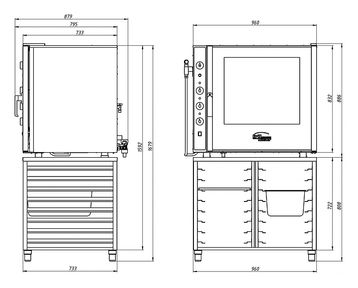 Пароконвектомат Grill Master ПКЭБ/6 предназначен для приготовления различных блюд, выпечки хлебобулочных и кондитерских изделий на предприятиях пищевой промышленности, общественного питания и торговли. Модель оснащена 2 мощными вентиляторами с реверсом и распашной дверью с безопасным плавным открытием. Корпус выполнен из нержавеющей стали, дверь - из двойного термостойкого стекла. В комплект поставки входя подключение к водопроводу и душирующее устройство. Особенности: