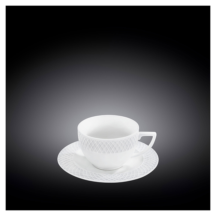 Кофейная пара Wilmax WL-880106/1C предназначена для подачи кофе и других напитков на предприятиях общественного питания и торговли, а также в домашних условиях. Набор состоит из круглого блюдца с ромбовидным узором и чашки для капучино. Изделия выполнены из высококачественного фарфора белого цвета с глазурованной поверхностью. Цена указана за 1 шт. Особенности: