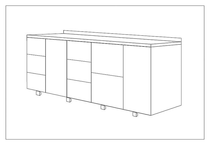 • 1 секция: 3 маленьких ящика; 2 секция: дверь; 3 секция: 3 маленьких ящика; 4 секция: 2 стандартных ящика